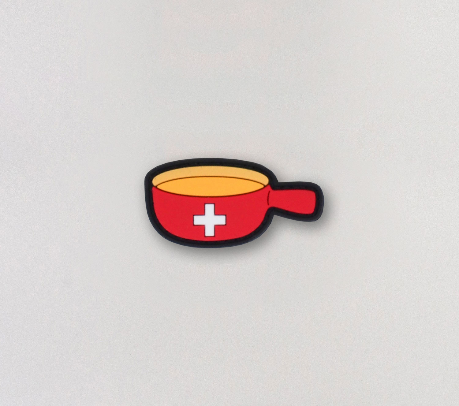Patch PVC humoristique reprenant le design du caquelon à fondue.