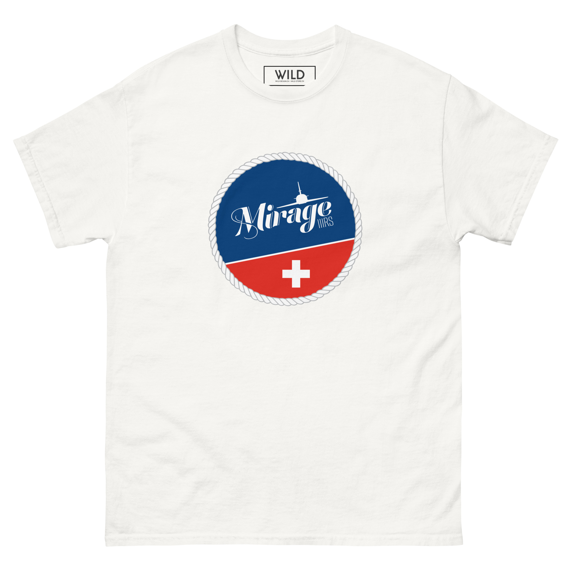 Ce t-shirt affiche un design façon badge rendant hommage au légendaire Mirage III RS de l’armée suisse. En haut, une typographie vintage affirme le nom “Mirage III RS”, tandis qu’au centre trône la silhouette frontale iconique de l’avion, fuselée, élancée, prête à transpercer le ciel. En bas du visuel, le drapeau suisse apporte la touche nationale, ancrant ce chasseur mythique dans l’histoire helvétique. Un style sobre, équilibré et fort visuellement — parfait pour les passionnés d’aviation et de design rétro militaire.